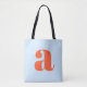 Bolsa Tote Cute Soft Blue Orange Monogram Retro Lettering