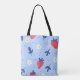 Bolsa Tote Cute Strawberry and Spring Flower Pattern on Blue
