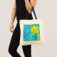 Esta bolsa de tote lança uma colagem digital composta por várias camadas de pinturas, texturas e digitalizações. O ensolarado daffodil "pop" do fundo azul.