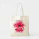 Saco de mão de hibisco rosa para as damas de honra e membros da comitiva nupcial. Uma imagem realista de flor com texto em script preto é impressa em um lado do saco de algodão natural. Personalize o texto em dois lugares com o nome e título dela.