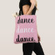 design de música diz dança em um simples design em preto e branco sobre fundo rosa.