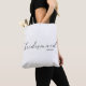 Bolsa tote para madrinhas com inscrição preta linda e nome personalizado em ambos os lados. Top aberto e alças duplas pretas para facilitar o transporte. Kimberly Brett.