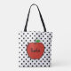 Bolsa tote de professores com bolinhas e maçã verm