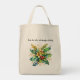 Saco na moda e festivo em estilo sazonal, com folhas, bagas e flores sagradas de ambos os lados. As palavras acima da imagem são "Passe os corredores com ramos de Holly". Um design de Natal bonito para comprar de Natal, a bolsa também faz um presente de novidade útil.