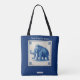 Um gigante corajoso, monotone, mamute azul (mammathus primigenius) ao estilo de um azulejo Delft. Personalize adicionando seu próprio texto.