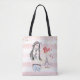 Viagem Paris Rosa Stripes Personalizado Esboça Tote Bag com uma garota e a Torre Eiffel. Personalize com seu nome ou um nome de amigo.
