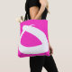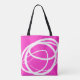 Essa legal bolsa de tota de boho apresenta um design simples, atraente, composto por uma linha branca de jogo que faz um desenhar diferente de cada lado: uma é muito fina em formas circulares e a outra é mais espessa, gerando um triângulo expressivo irregular. O pano de fundo é a fúcsia.