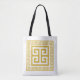 Saco de Tote com chave grega (Meander) padrão elegante design em cor de ouro com limite de chave para combinar. Esta design do famoso e popular padrão grego da linha contínua pode ser editada para mudar sua cor, se você quiser. Você também pode alterar a cor de fundo do design editando-a.