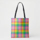 Bolsa Tote Design de Xadrez de Tartan Amarelo verde-rosa