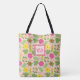 Carregar o espírito das ilhas com este saco de tota de monograma lúcido com uma vibrante design havaiana. Flores rosa, amarela e vermelha de hibisco, folhas tropicais verdes, dançarinos de hula são emparelhados com texto rosa e pêssego aloha e hula, além de um monograma para um toque pessoal. Perfeito para os entusiastas da cultura havaiana indo para a praia ou fazendo tarefas com um toque de aloha. Personalize este modelo e/ou edite com ferramentas design para uma aparência distinta.
