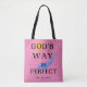 Este bolsa baseado na fé cristã colorida tem duas mensagens eternos de cada lado. Um lado exibe as palavras 'Deus é perfeito' com base no Salmo 18:30. O outro lado retrata um arco-íris e nuvens inchadas com um espaço para o seu nome no meio. O texto diz "Sempre Há Um Arco-Íris Após A Chuva".
