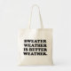 Queda significa virar folhas, lareiras, legal noites...e suéteres! Mostre seu apreço pela estação de suéter com este bolsa bonitinho. A design apresenta "Sweater Weather Is Melhor Weather" em texto preto retrô. Use o campo personalização opcional para adicionar um nome ou mensagem.
