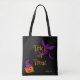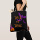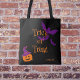 Prepare-se para o Halloween com esta bolsa de tote manotacular! Esta bolsa divertida tem um Jack O Lanterna vestindo um chapéu de bruxa, acompanhado por morcegos roxos voadores. Perfeito para Trick ou Tratar. Personalize-o com o nome do seu filho, fazer-o como um complemento à fantasia de Halloween. Use as ferramentas de design para alterar o texto, a cor e a fonte. Feliz Dia das Bruxas!