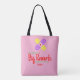 Esta bolsa de tote de enfermeiro pediátrico diz que pequenos pacientes enfermeiros pediátricos Big Rewards. O texto adicional que pode ser alterado para o nome do enfermeiro pediátrico está próximo do fundo. Duas curvas e três corações vermelhos acompanham o texto. A bolsa de tote é rosa claro.