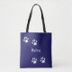 Desça a rua em estilo com o seu cão ao seu lado e com este lindo saco azul com estampas de pata de cão. O azul é uma bela cor forte e se destaca em relação às impressões da pata branca. As impressões são desenhadas para serem nítidas e claras e representarem um cão grande. Para completar sua roupa, há uma parte superior e calçados correspondentes. Você também pode alterar as pegadas brancas para outra cor personalizada, basta clicar no botão personalizar e escolher uma cor na grade à direita.