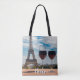 Bolsa Tote Dois copos de vinho com torre Eiffel