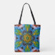 Bolsa Tote Dot Mandala Flor Azul Amarelo e Verde