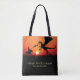 "Obstáculos não bloqueiam o caminho. Eles são o caminho" Citação Inspiracional e Motivacional para Shopping Bags e Bolsas. Silhouette Dragon & Knight em Horseback contra o pôr do sol. Personalize com sua própria citação ou mensagem, se desejar. ideia de presente de excelente.