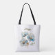 Bolsa Tote Elegante Aquarela Azul Poppies Monograma Nome