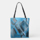 abstração multicor contemporânea com formas azuis, pretas e cinzas. Você será original com este trabalho de arte bonito na sua bolsa de tote.