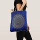 Um belo saco circular de arte floral mandala em ouro luminoso sobre fundo azul profundo, inspirado pela arte do corpo de hndi henna. Excelente para carregando suas coisas para ioga, classe de dança ou academia.