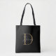 Bolsa Tote Elegante Monograma de Letra em Preto Meia-Noite Do