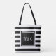 Bolsa de iniciais monograma personalizadas elegante e moderna com um padrão de faixa preta e branca com suas iniciais. Criado por Thisisnotme©