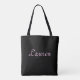 Esta bolsa tote, com sua letra sofisticada, vai adicionar um toque de especial quando você fizer suas tarefas do dia. Personalizável. Por Sharon Lee Hudson.