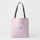 Bolsa de mão com monograma inicial personalizado em rosa bege elegante, simples e feminino. Este design apresenta seu primeiro nome em uma linda tipografia de letra manuscrita com cauda ornamentada (ou caligrafia) com monograma inicial em branco e cinza sobre um fundo rosa bege ou rosa bebê claro. Ótimo presente feminino para aniversário, casamento, Natal, chá de noiva, festa de aniversário de 16 anos, despedida de solteira ou para formatura. É para a garota que gosta de coisas minimalistas e limpas.