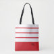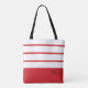 Elegante design contemporâneo apresenta uma mistura de faixas grossas e listras finas em branco crocante e vermelho moderno. Adicione duas ou três iniciais monogramadas em script preto estiloso. O design se repete nas costas. Solicitações de cores personalizadas aceitas.