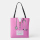 Cartera de enfermeira única com scrubs rosa criativos e estetoscópio. Edite o texto para personalizar para sua enfermeira favorita.