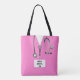 Saco de designer com tema médico único com escovas de hospital rosa e criativas. Para personalizar editar texto para adicionar nome.