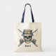 O crânio e os cruz-pólos do pescador, com chapéu atração-enchido e os peixe-ganchos enganchados em seus olho e nariz. Gráfico azul e tan, em t-shirt, hoodies, cartões, presentes.