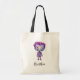 Um saco de tote com uma ilustração fofa. Monstro de Frankenstein com cabelo rosa e roxo e um casaco e gravata.