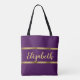 Bolsa Tote Escrito em negrito com nome de ouro roxo