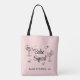 Sacos de compras cor de rosa claro femininos e fofos para a sua festa de despedida de solteira, apresentando esboços de garotas glamorosas de festa tomando sol em copos de martini de coquetel, estrelas cintilantes, "Esquadrão de Bebês" em um script retrô da moda e o local da festa ou outro texto em letras simples e modernas.