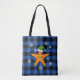 Bolsa Tote Estaleiro do Natal Kawaii no padrão azul de búfalo