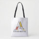 Monograma elegante, engraçado, artístico. Aqui está a letra A. Estilo neoplasticismo, ou De Stijl, decoração artística em linha e cor, o pássaro engraçado se senta na letra. O campo de arte está localizado sob a letra. O nome do modelo "ANTOINETTE" está localizado abaixo da imagem. A pintura modernista de abstrato é colocada atrás. Uma bolsa de tote elegante e única para qualquer um. Este design é totalmente personalizável. Você pode alterar ou excluir o nome do modelo e pode alterar duas imagens. Se você quiser alterar fontes, cores, tamanhos ou toda a composição do design, sinta-se livre para usar o botão "Editar Design" ou "Personalizar" (conforme o caso) da cor azul para personalizá-la ainda mais. Você será transferido para a "Ferramenta Design" onde você poderá encontrar fontes, cores, tamanhos no menu direito; camadas, imagens, elementos geométricos, fundo no menu esquerdo. Seja criativo, personalizado, comprar um, aproveite e seja feliz!