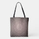 Esta bolsa colorida de tote de amor apresenta um complexo design de mandala cor-de-rosa criado de uma fotografia de pedra rosa. As cores vão com qualquer roupa, e o saco de tote será um acessório muito prático e iluminará qualquer roupa.