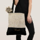 Esta sacola dianteira da forma bonita mostra a palavra "noiva" em uma cor de texto do Ouro-Caramelo sobre o preto com a sacola superior no bege com pequeno impressão dourado das estrelas all over. Tem a abundância da sala para o texto personalizado. Os gráficos e o texto são em ambos os lados desta sacola. Punho preto. Personalize mais ou compre como mostrado.