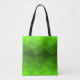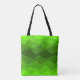 Esta bolsa de tote tem um design geométrico de cinco tons verdes correndo horizontalmente.