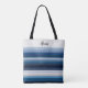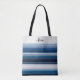 Listras horizontais largas e estreitas em azul, preto, cinzas e branco fazem um saco de tote clássico e clássico. Personalize com seu nome em um bloco de cores largas no topo.