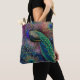 "Fantasy Peacock Dourado Glitter Feather Script Name Por Todo O Padrão Tote Bag." Design pavão elegante e mágico, cor-de-rosa, roxo, azul-lacre, safira e azul-marinho, com sotaques brilhantes verdes e dourados. Seu nome ou mensagem na caligrafia com espiral floresce. Concebido por uma artista com licença internacional, Audrey Jeanne Roberts, copyright.