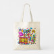 Feliz Aniversário, Sacos de tote, por ArtMuvz Illustration. Correspondência com presentes de aniversário personalizáveis e roupa. Festa de aniversário para aniversariante e aniversariante. Roupa de aniversário e presentes de festa de aniversário surpresa. Celebre seu aniversário em estilo! O design de aniversário colorido certamente vira cabeças e te coloca no espírito de aniversário! Para personalizar, adicione seu nome ou adicione texto. Personalize esta bolsa de tote de aniversário para torná-la exclusivamente sua ou para dar como presente personalizado.