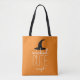 Envie seu pequeno truque ou tratador com este adorável saco personalizado em laranja festiva do Halloween, com "fofo malvado" em branco tocado com uma ilustração de chapéu de bruxa negra. Personalize com um nome em caracteres brancos modernos.