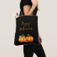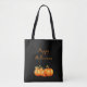 Saco preto de tote no Halloween. O design apresenta abóboras. Coincidindo com itens da festa do Dia das Bruxas em nossa loja.