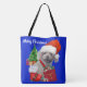 Bolsa Tote Feliz Natal Poodle Azul Damas Ombro