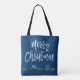 Feliz Natal personalizado Saco de Tote de Marinho de Manuscrito com Letra de Manuscrito com a garland de aquarela.