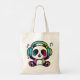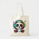 Bolsa Tote Feliz Panda com fones de ouvido ouvindo música.