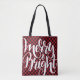 Bolsa Tote Feliz Vermelho Negro Negro BriXadrez Tartan Xmas